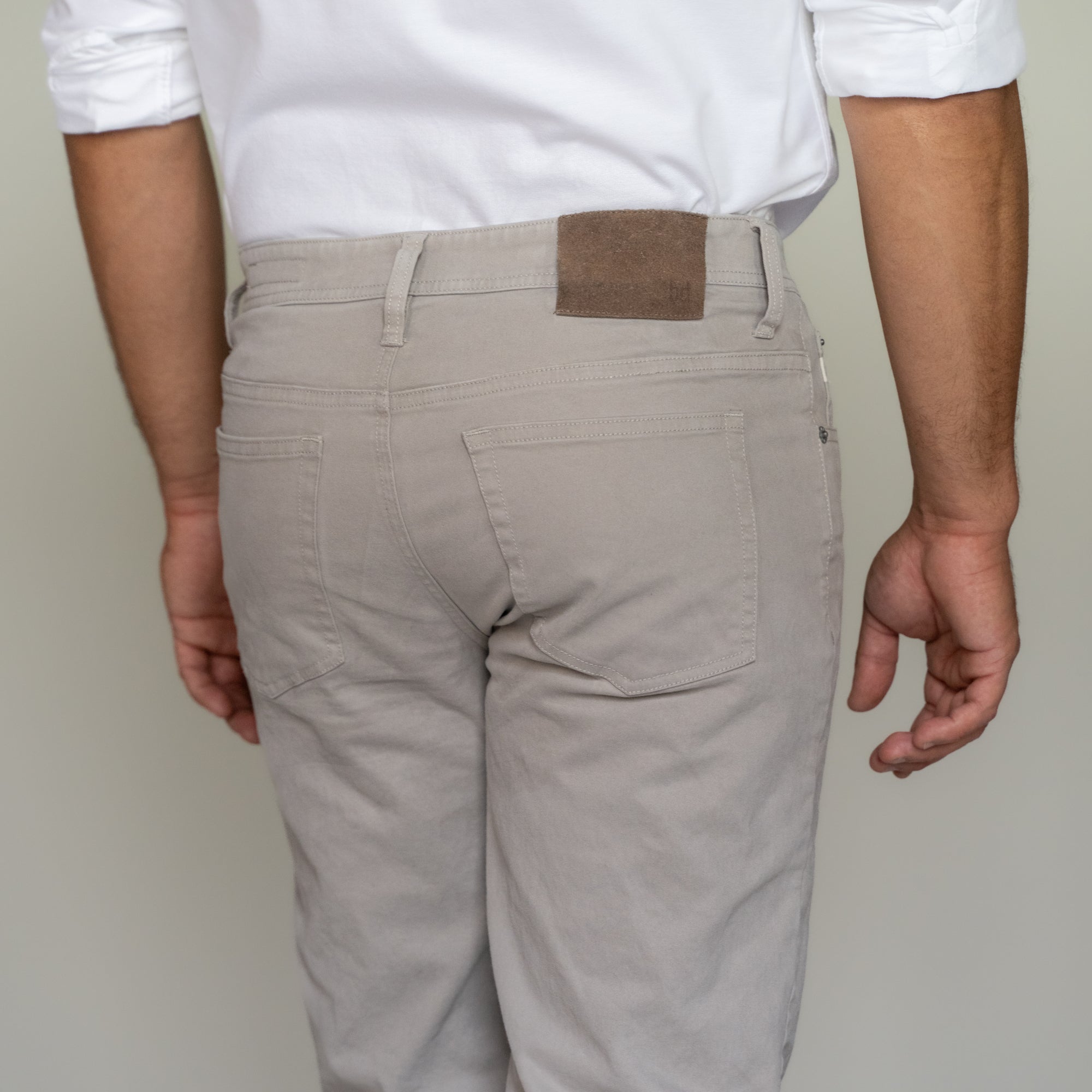 Soft, lightweight stretch cotton fabric from Italy, done in a traditional 5-pocket styling.